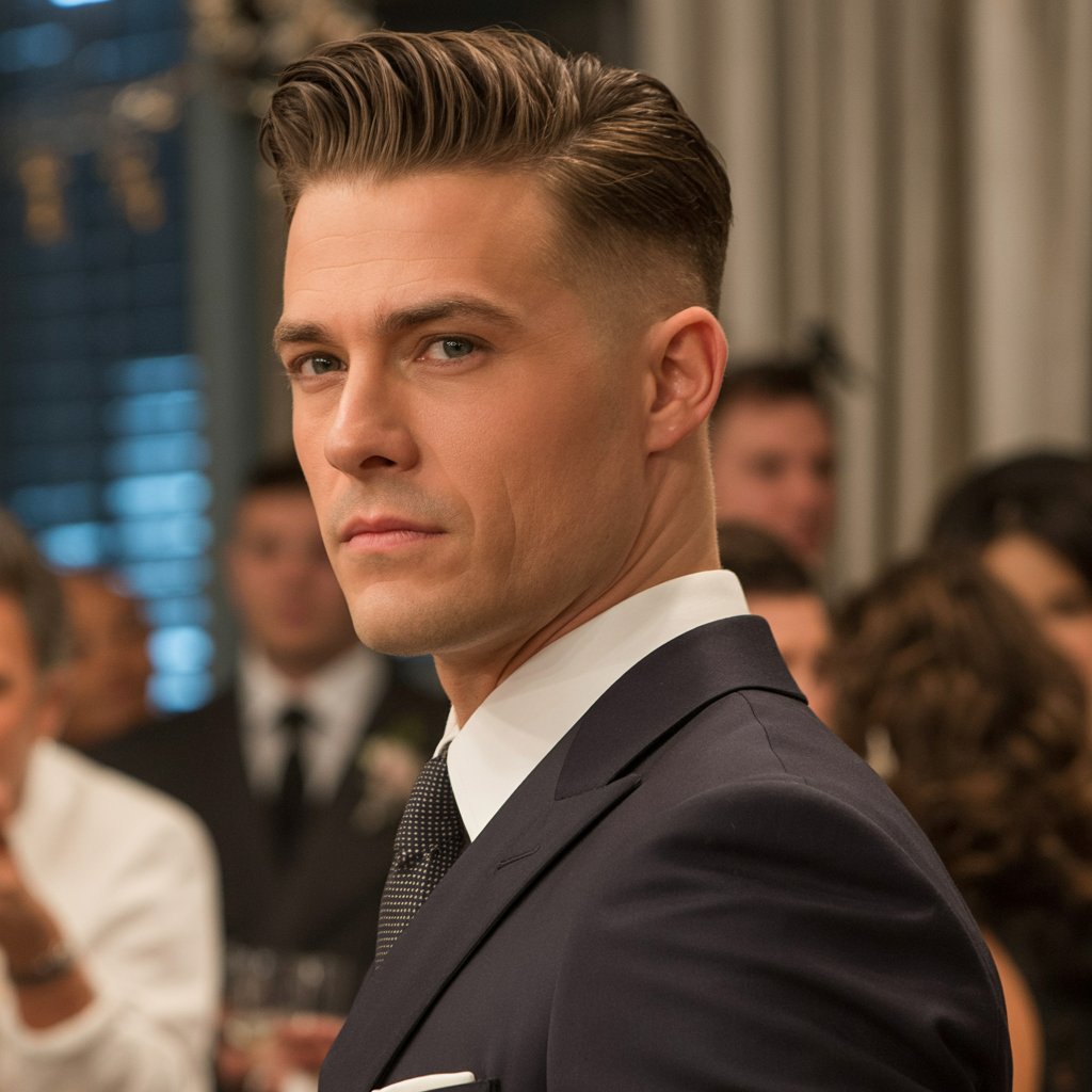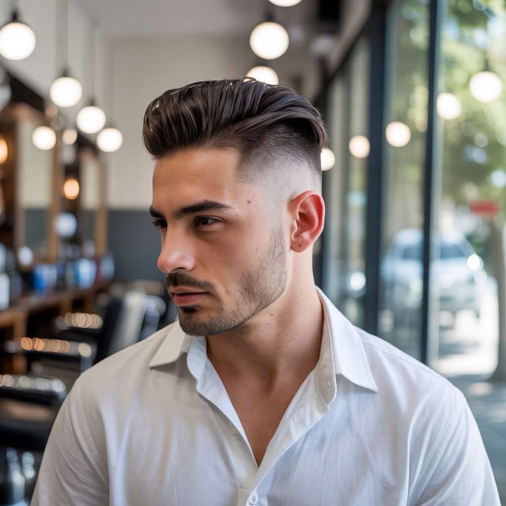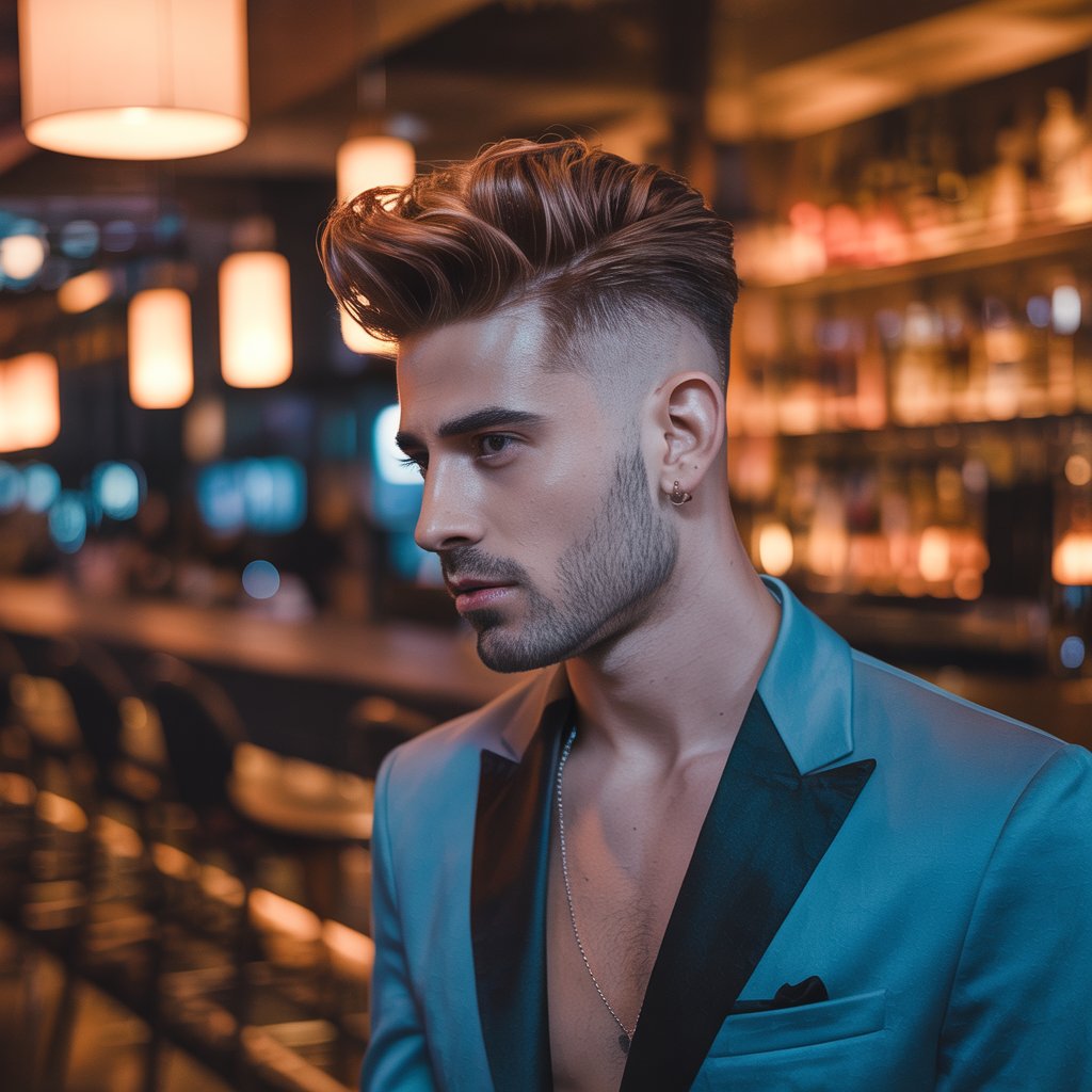 Pair a fade with a voluminous quiff for a red-carpet-ready style. Suits square and oval faces, and is perfect for weddings or date nights. Blow-dry with a round brush and finish with hairspray.