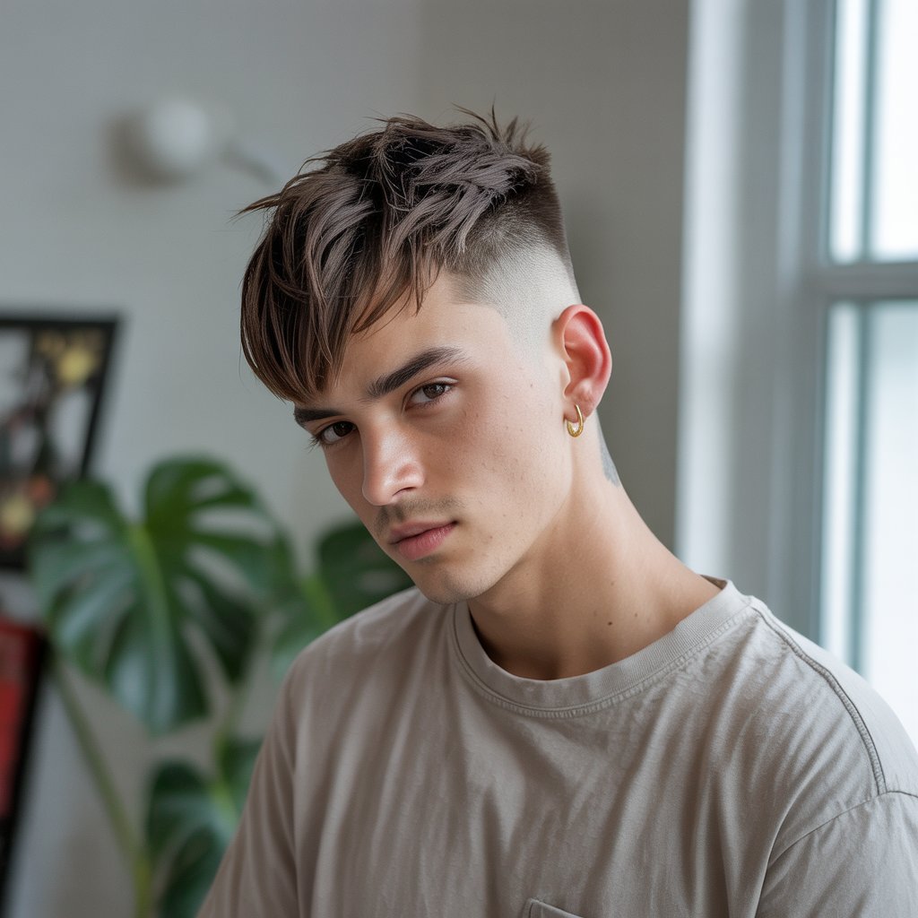 A favorite among trendsetters, the burst fade fans out behind the ear and pairs perfectly with a mohawk. Best for bold personalities and oval faces, it’s a standout for concerts and nightlife. Use a strong-hold gel to keep the mohawk sharp.