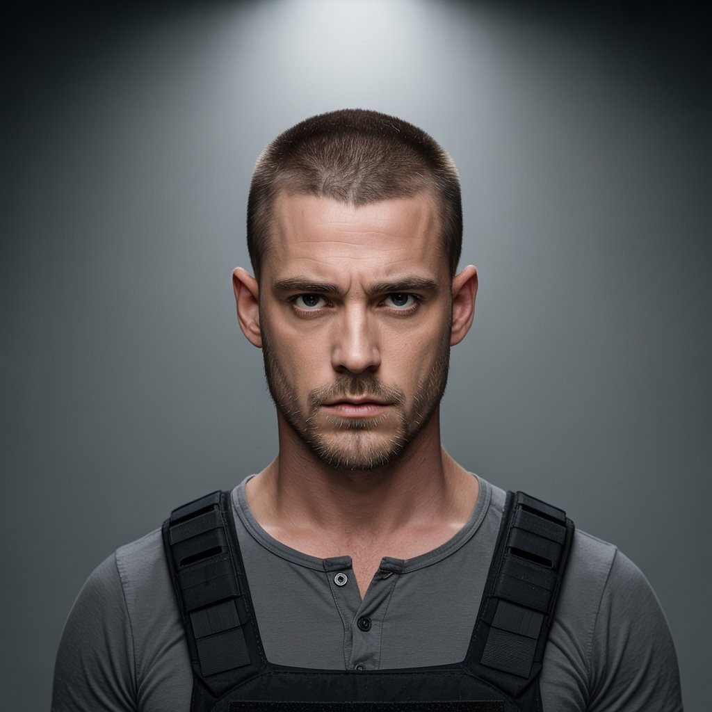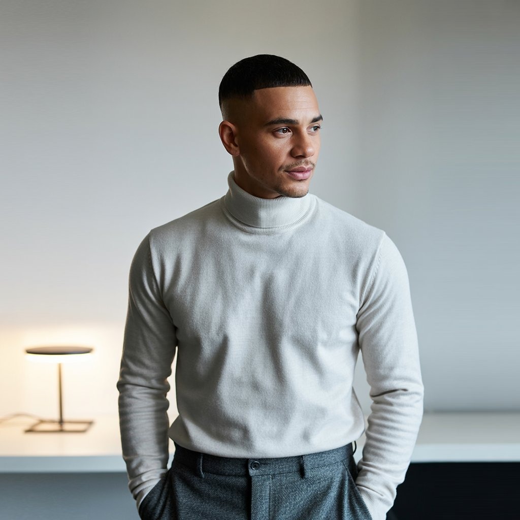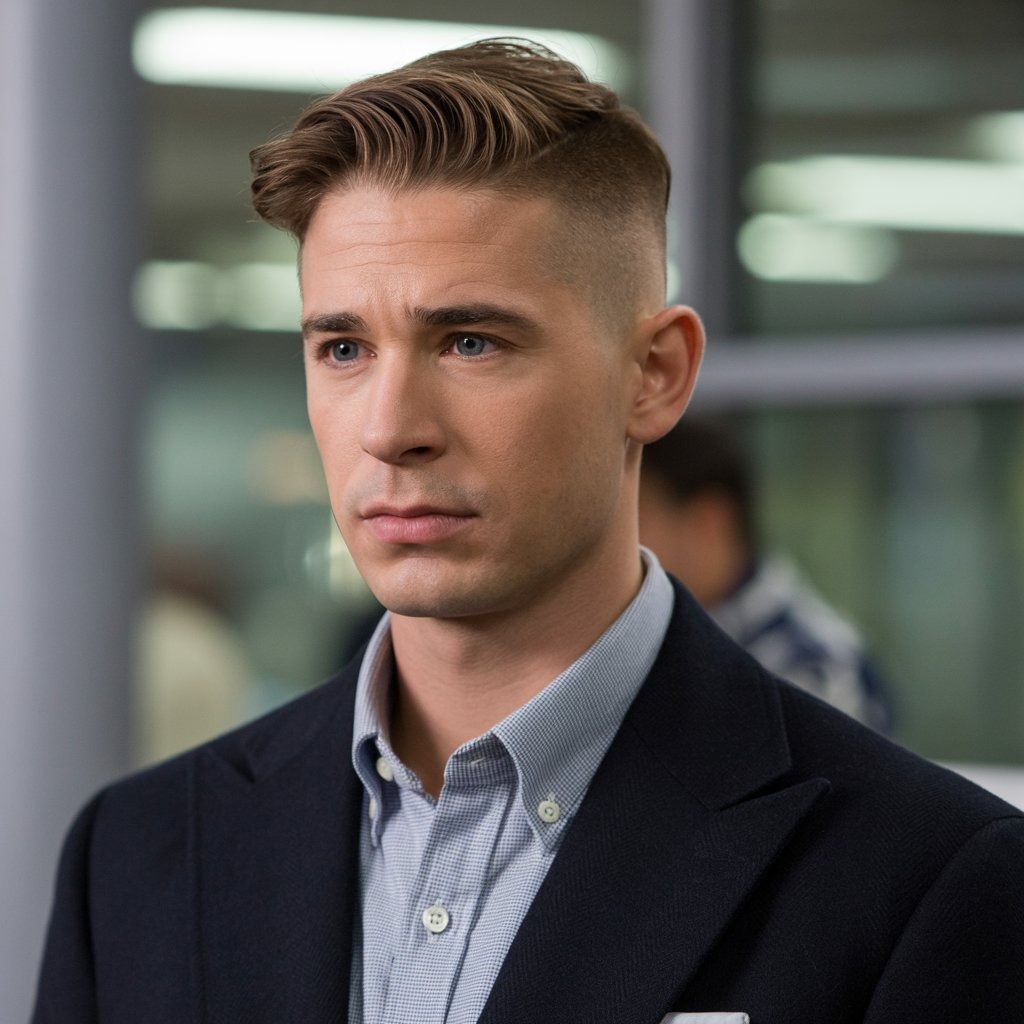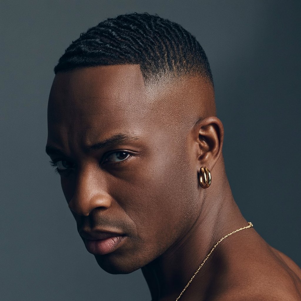 The cleanest of all: a buzz cut with a high skin fade delivers military precision. Ideal for oval or square faces and warmer seasons. It demands minimal upkeep but benefits from scalp care for a healthy finish.