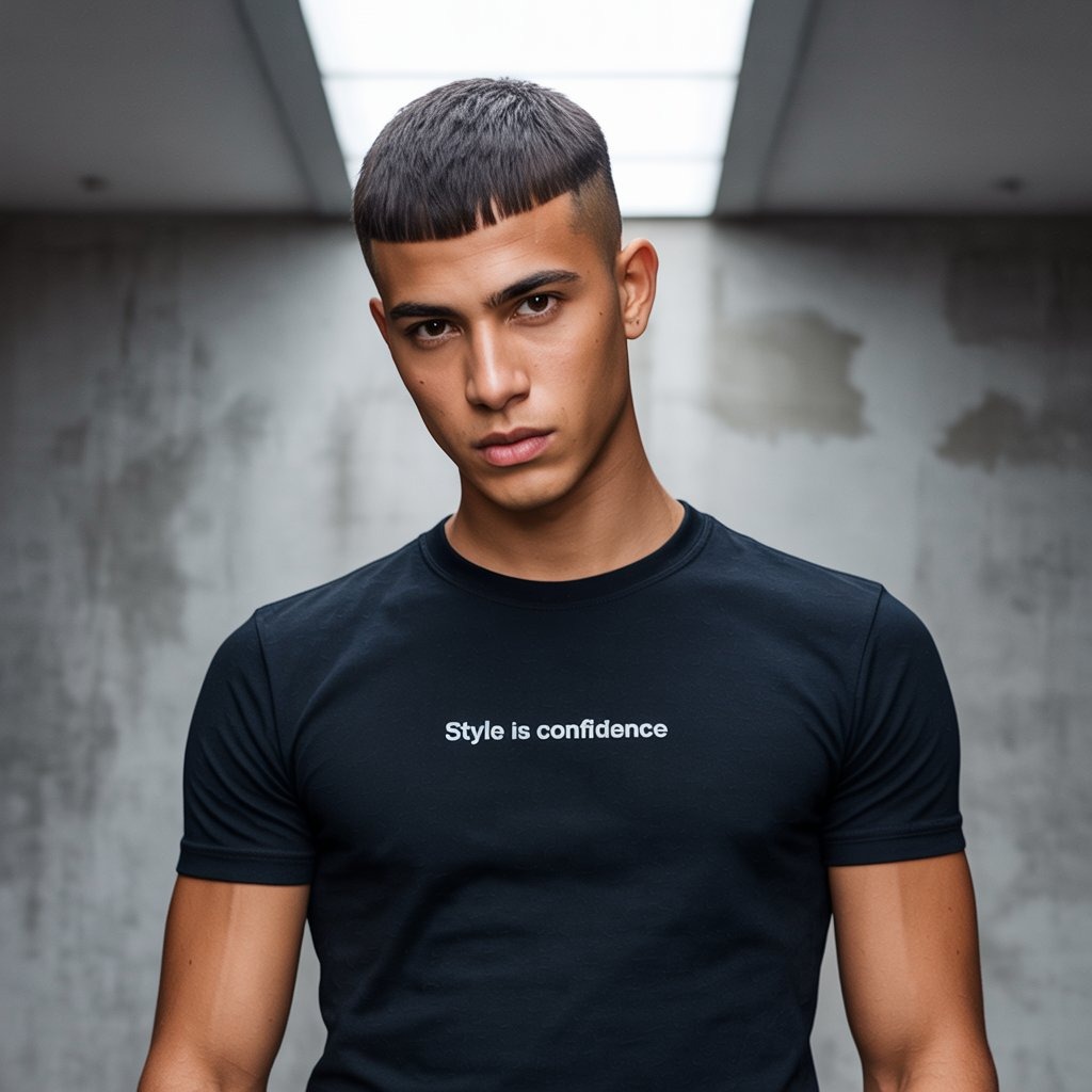 A refined Caesar cut with cropped bangs and temple taper. A Roman classic made for 2025’s streetwear generation. Works well with oval faces and thicker hair. Go light on product for a natural matte finish.