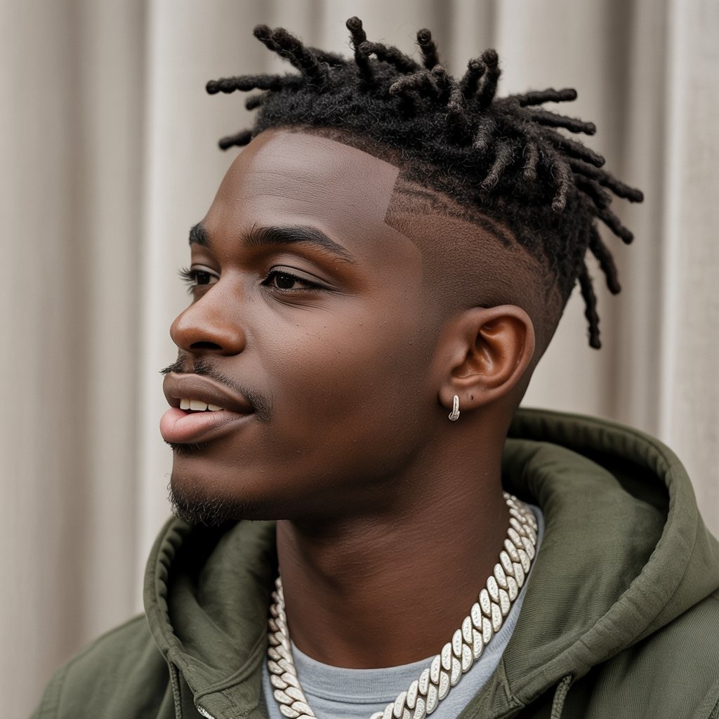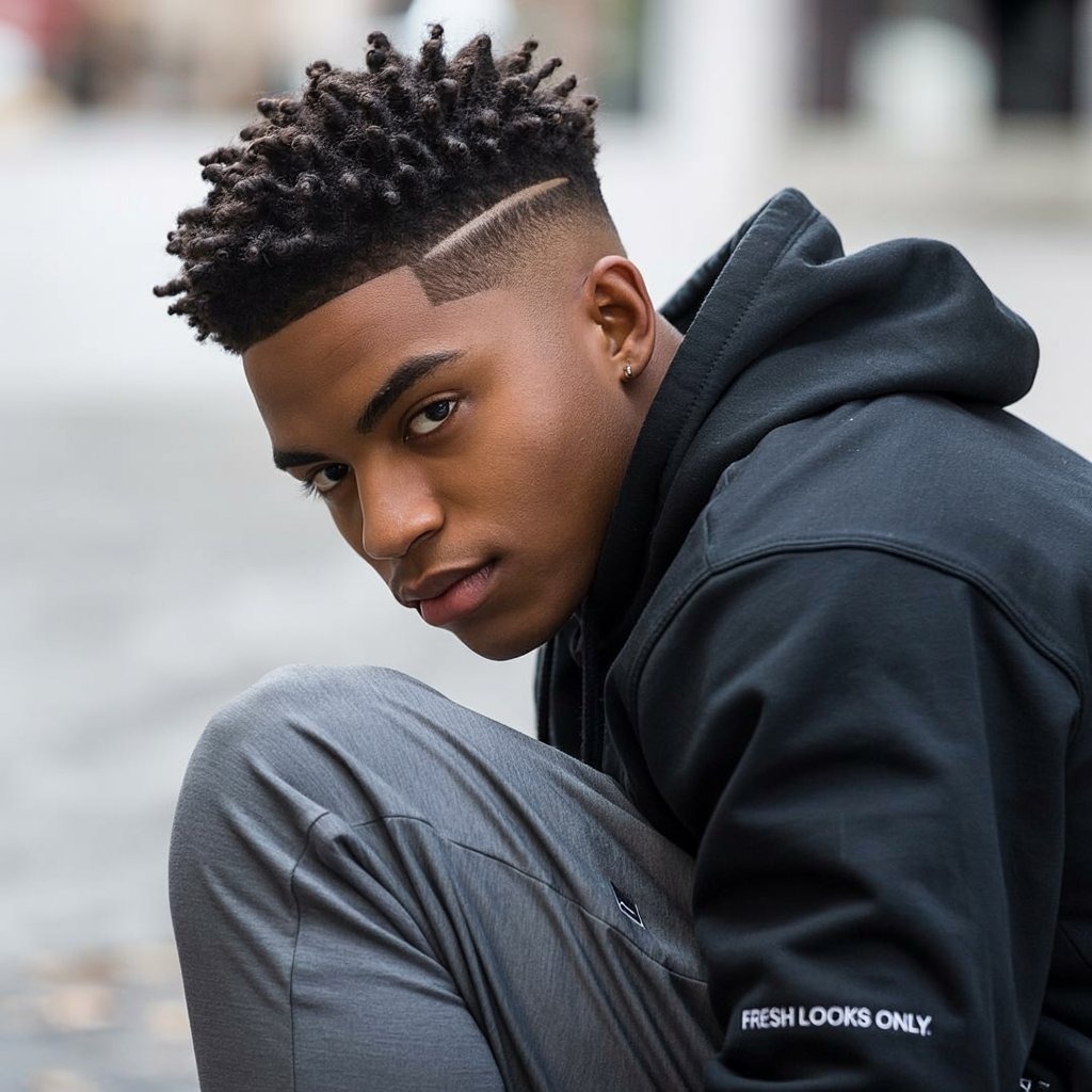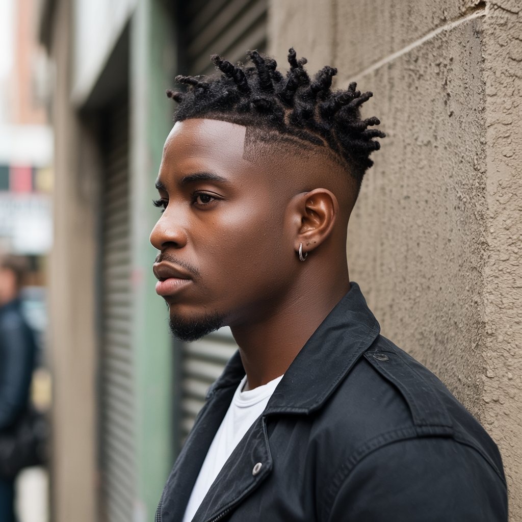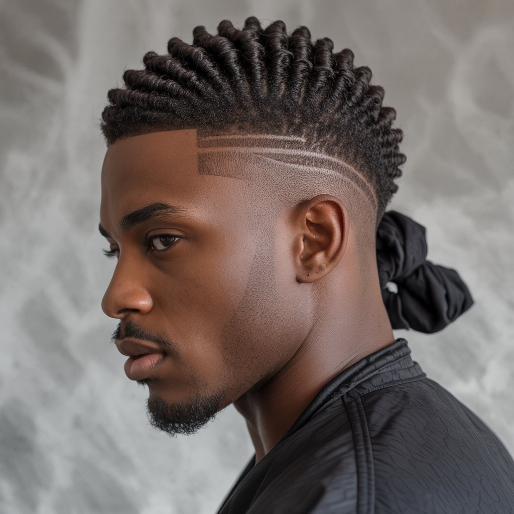 Twists + burst fade = maximum style impact. It’s a dynamic look for Black men seeking bold contrast. Maintain twists with a leave-in conditioner and retwist every 2 weeks.