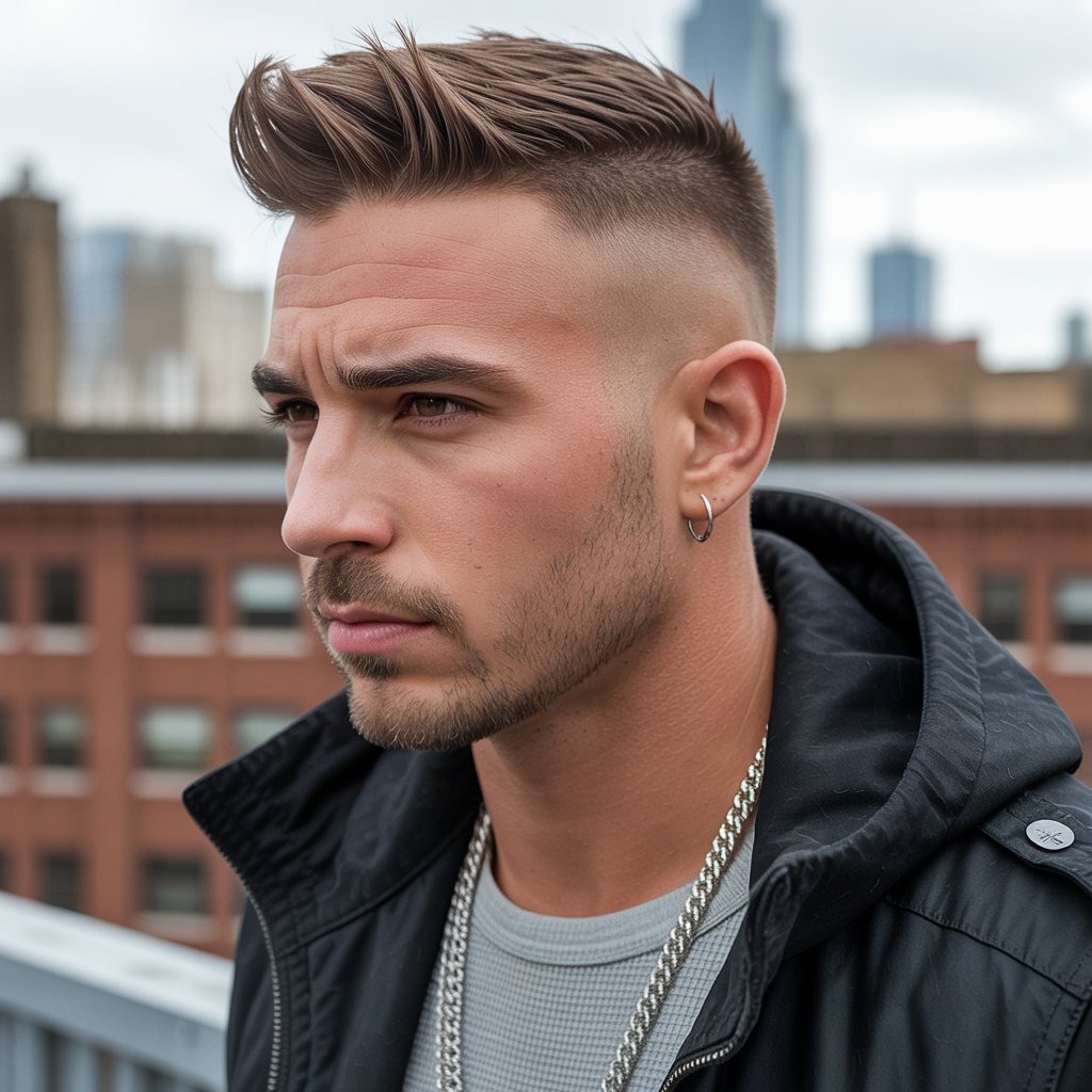 Edgy but wearable, the faux hawk blends punk roots with barbershop precision. Ideal for active lifestyles and gym-goers. Spike the top using a strong-hold product for all-day control.