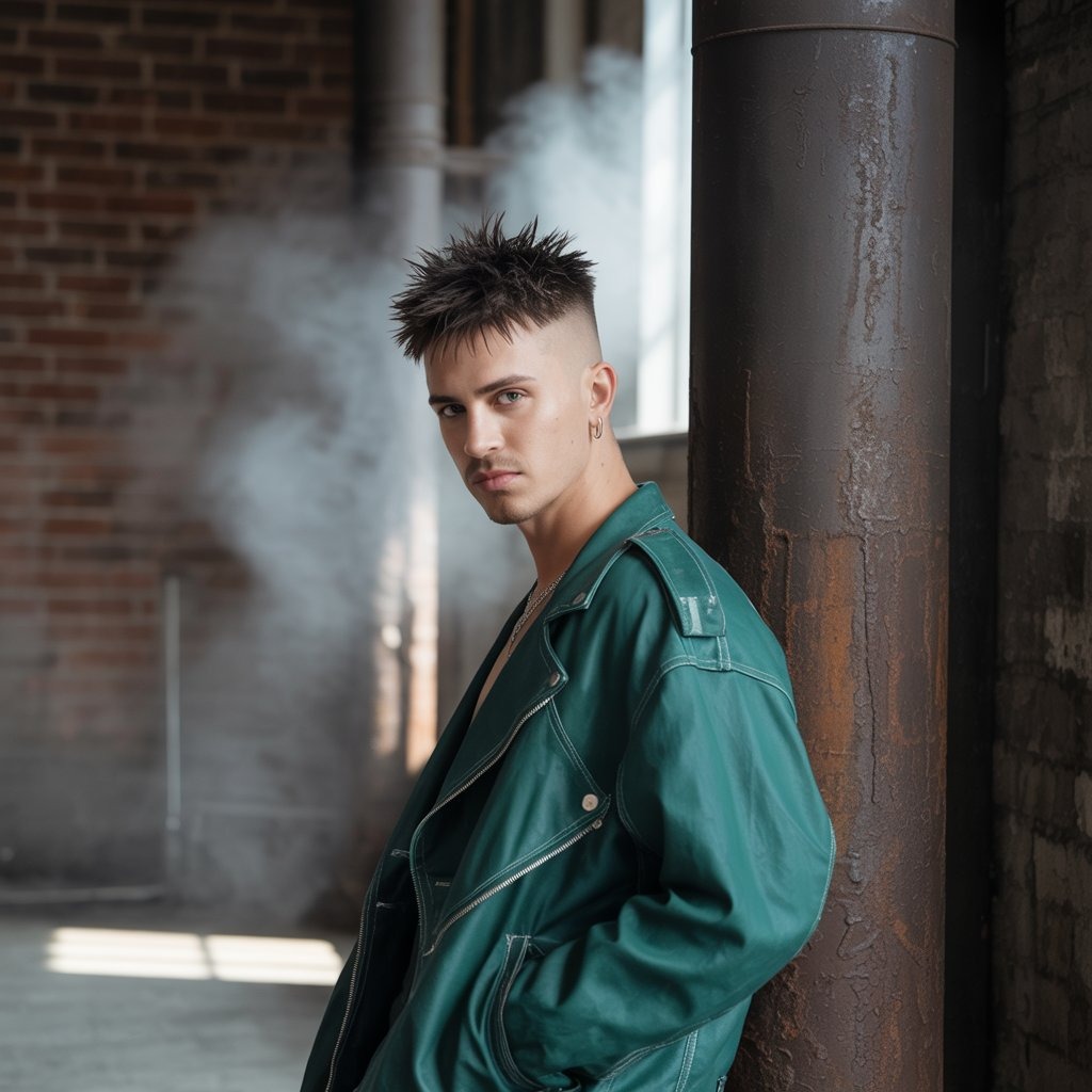 2025’s breakout look—platinum tips, chaotic spikes, and razor-sharp fade. A Gen Z style icon in the making. Use fiber wax to hold shape and keep bleached hair hydrated with weekly masks.