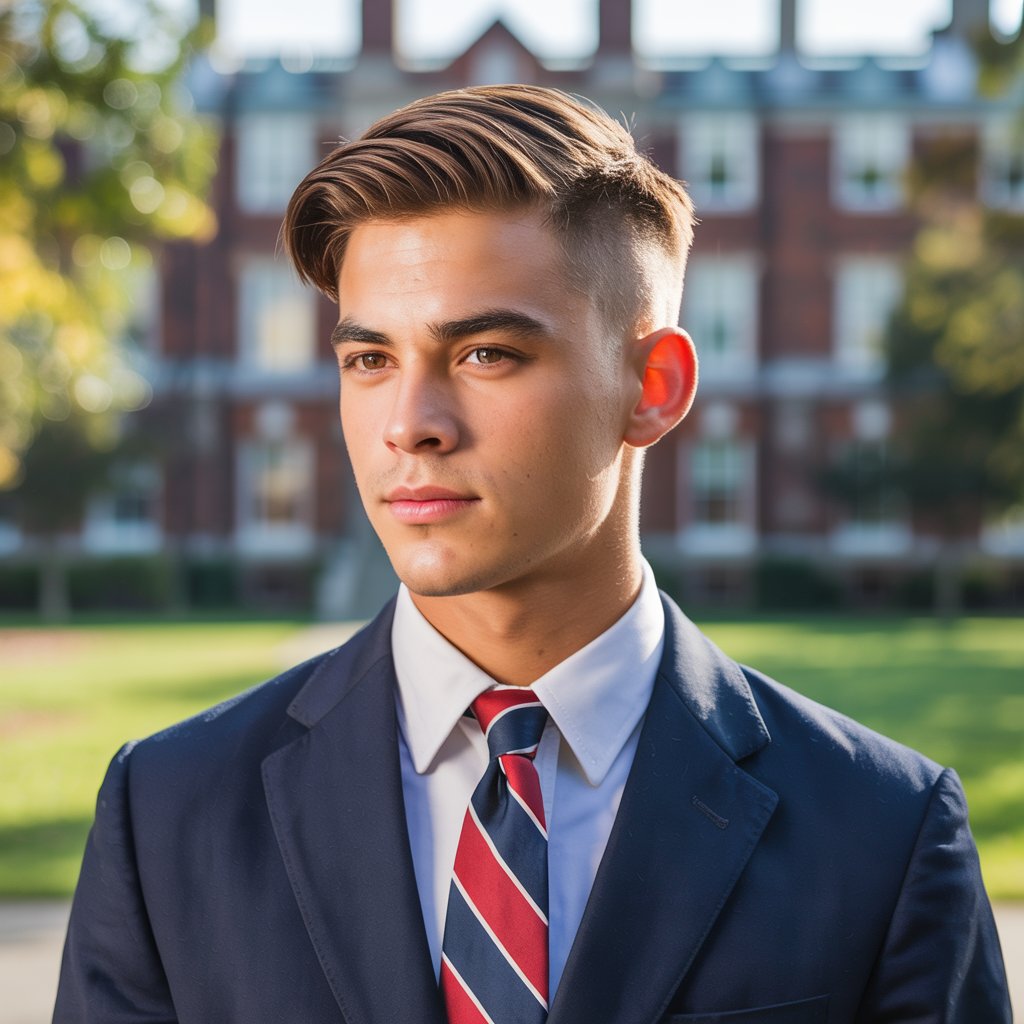A longer crew cut with a side part, exuding collegiate sophistication. Style with light pomade for a preppy, versatile finish.