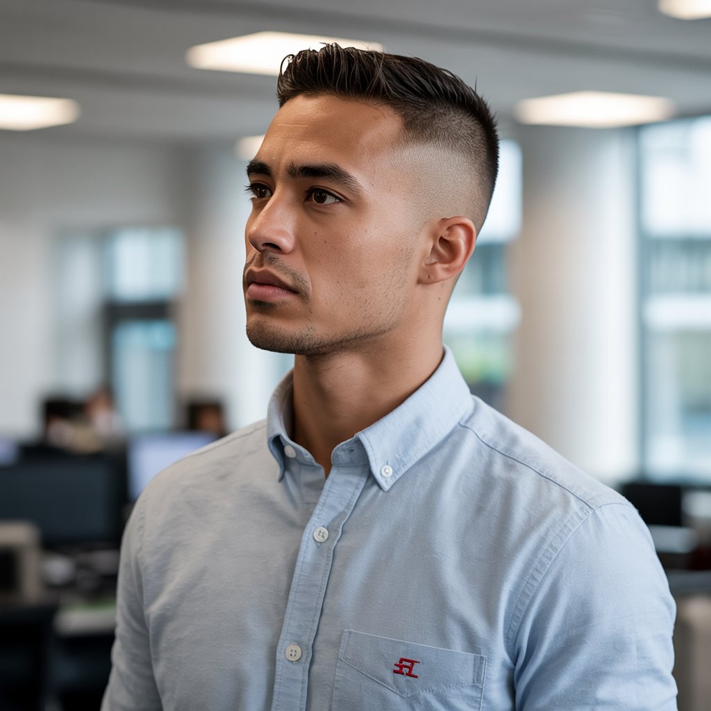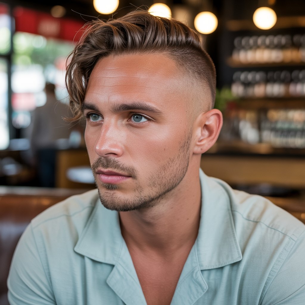 Sharp contrast between long top and buzzed sides. Bold and fashion-forward—perfect for nightlife and confident personalities.