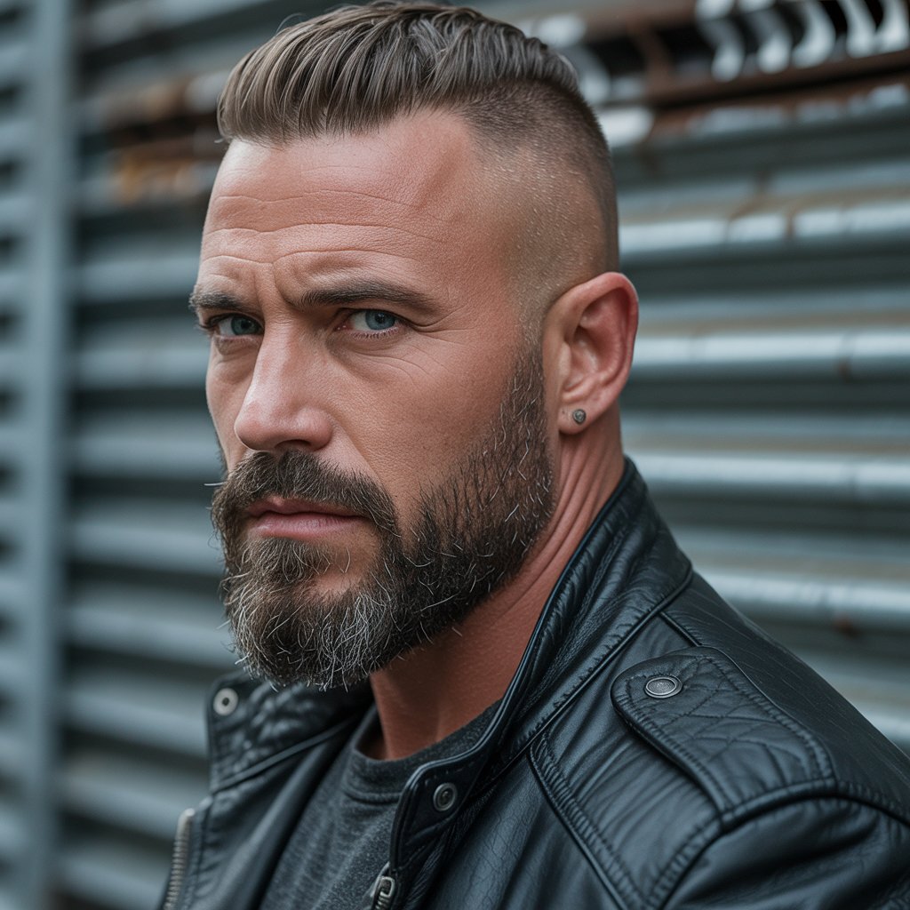 Pair a sharp crew cut with a well-groomed beard for a powerful, masculine look. Use beard oil for a polished finish.