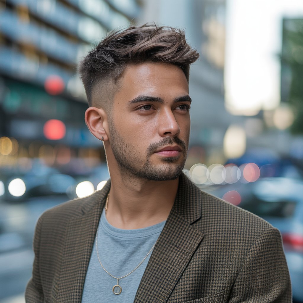 Aggressively tapered sides create a bold, high-contrast look. Draws attention to facial structure—perfect for nightlife and confident personalities.