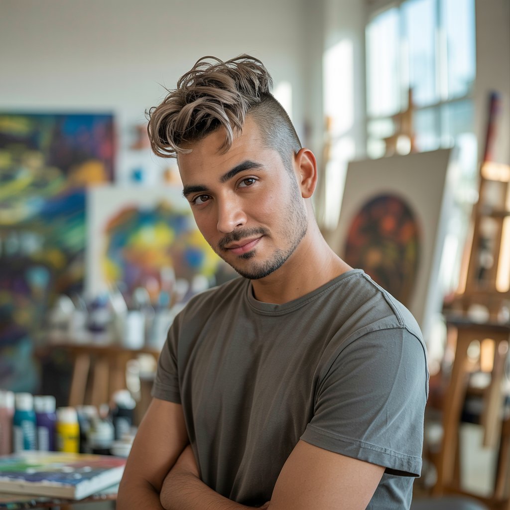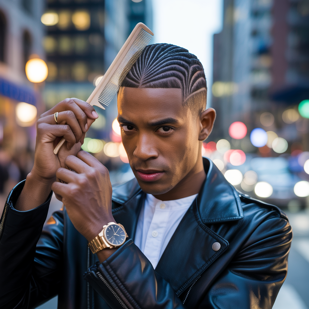 Add stars, zigzags, or geometric patterns shaved into the sides for a custom look. Suits bold personalities and creative lifestyles. Visit a skilled barber for best results.
