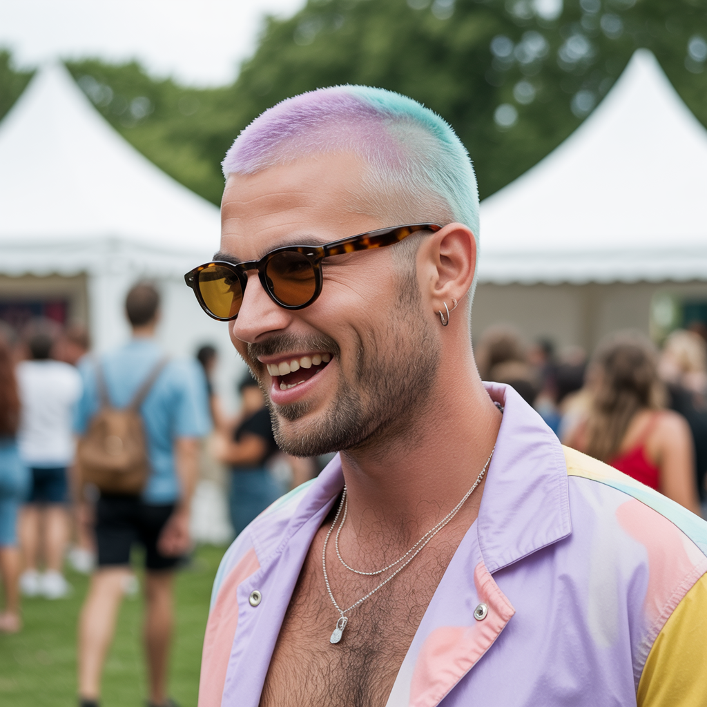 Soft pastel colors—think lavender, mint, or sky blue—turn a buzz cut into a playful statement. Best for creative spirits and summer adventures. Use color-safe products to maintain vibrancy.