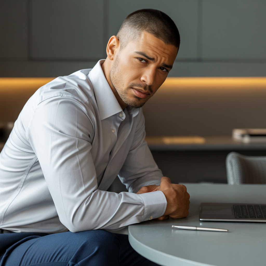 A sharp, modern twist—sides faded high up to the crown, with a slightly longer top. Best for angular faces and athletic builds. Style with a matte finish balm for a clean, crisp look.