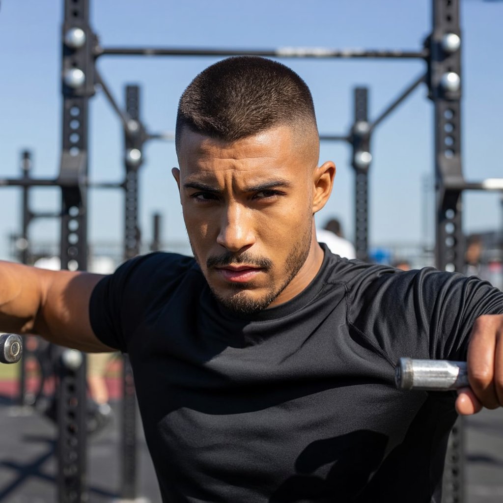 A blend of the crew cut and fade for a versatile, athletic look. Perfect for students, athletes, and busy professionals.